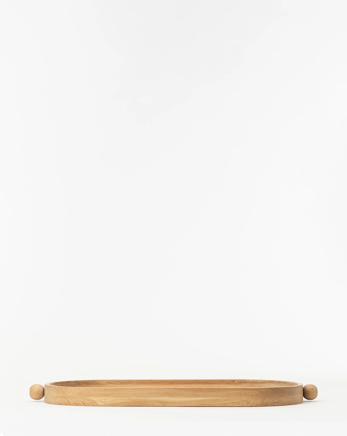 The Allard Wood Serving Tray brings detail to everyday serveware. Crafted from wood in a natural finish, this elongated, shallow tray has small handles that bring moments of detail and practicality to the piece’s structure and design.
