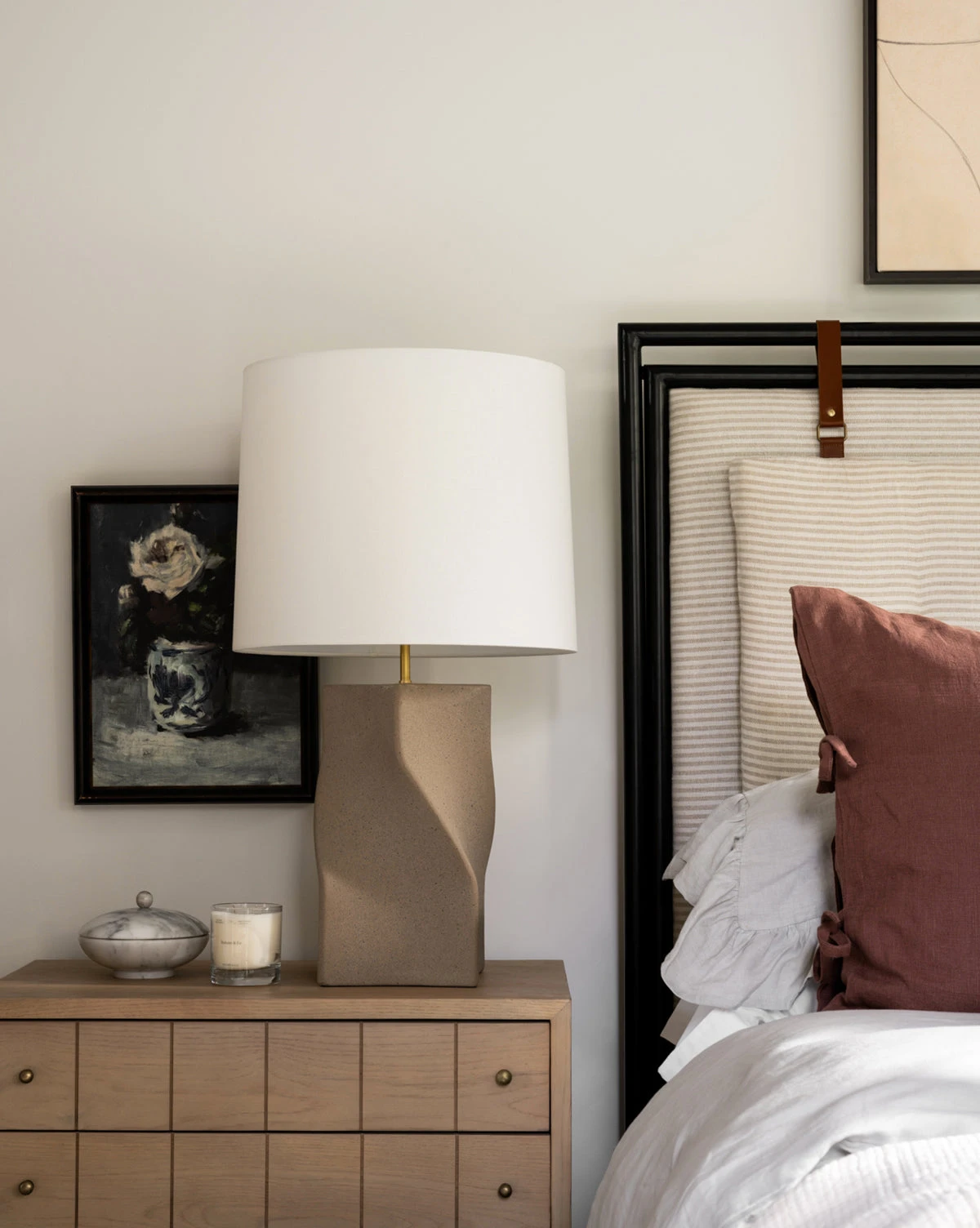 Soft lines give the Arabesco Marble Canister a shapely, broad form with a feminine feel. The piece is crafted entirely from marble, adding a weighted appearance that balances vignettes. Its dramatic marbling adds movement to your styling, completing any look with an elevated, modern design.