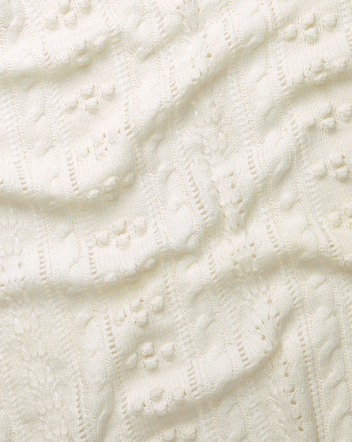 In a timeless style, the Bauble Wool Throw is made from a blend of wool and acrylic, ideal for lasting comfort. Its intricate detail is classic and elegant, with raised bauble and pointelle weave throughout. Bringing texture and a comforting neutral palette to your space, the wool throw elevates both living rooms and bedrooms.