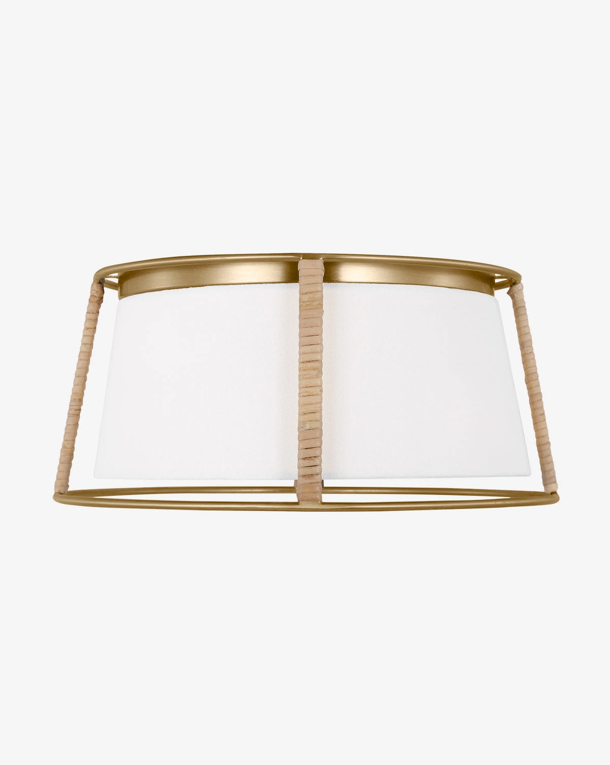 Masterfully mixing materials, the Cortes Medium Flush Mount provides an unexpected element to your home lighting. A rattan-wrapped metal frame holds a wide linen shade, bringing shape, detail, and warm light to any room.