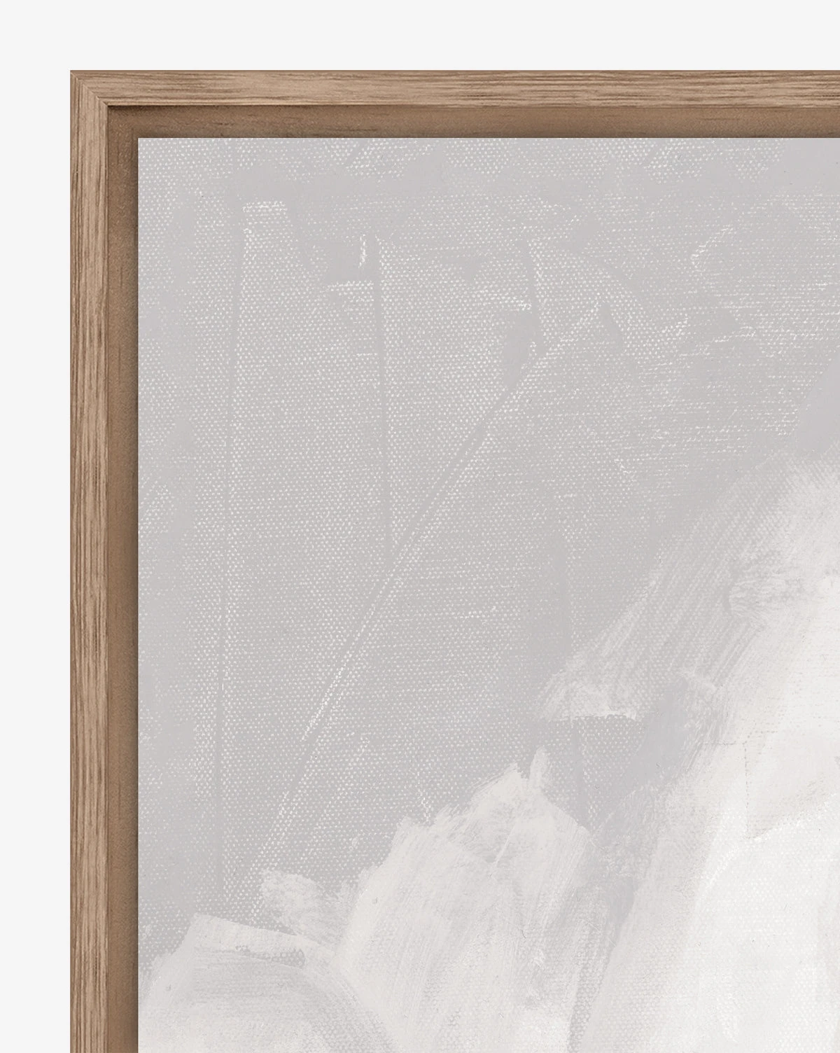 With a dramatic composition, Fractured II takes inspiration from nature, using a calming cool and neutral palette. Framed within natural wood, the piece elevates your decor with its details and museum-quality materials.