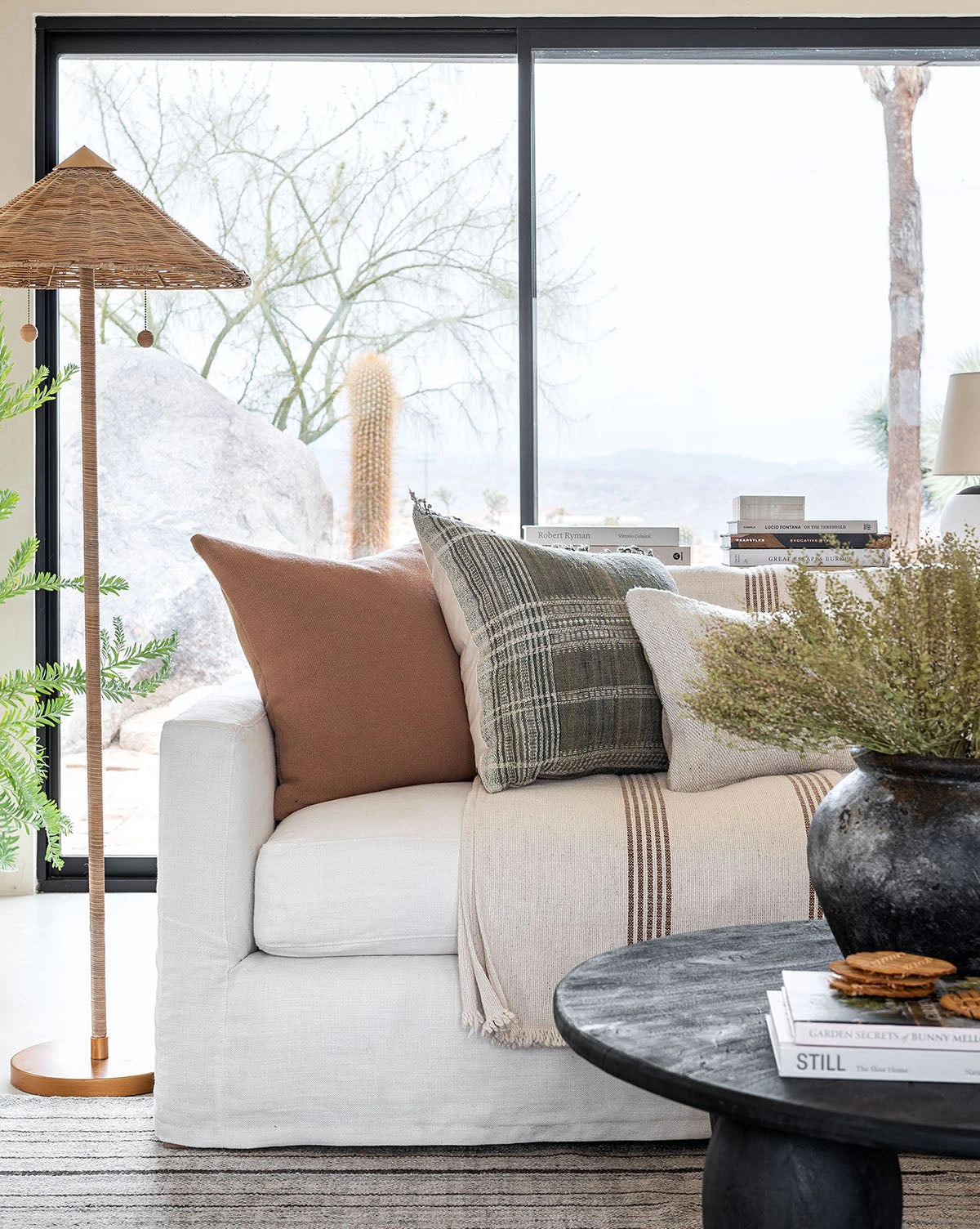 Hand-loomed using rustic hand-spun cotton and refined cotton twine, the Helena Soft Fringe Camel & Cream Blanket is created from an incredibly lightweight and soft fabric. With a striped motif, this blanket is perfect for layering during the colder months, or for use on its own during summer.