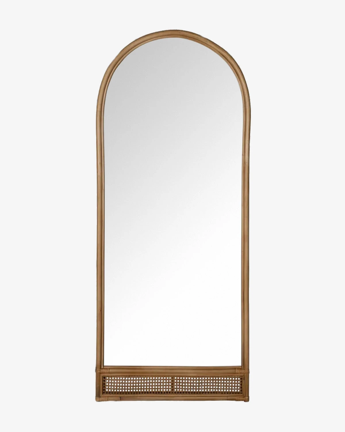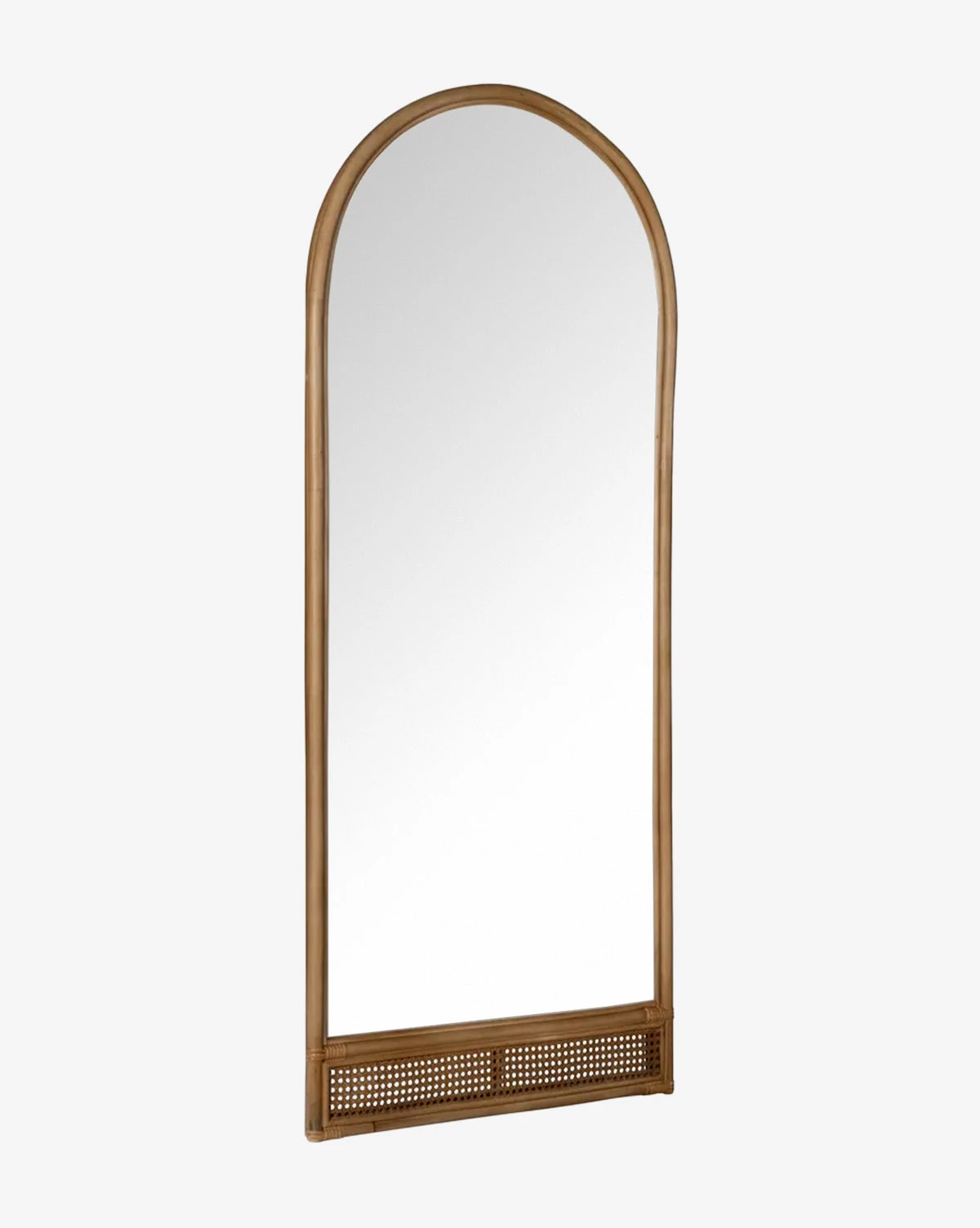 With a natural rattan frame, the Judah Floor Mirror is organic and versatile. The cane panel at the bottom of the mirror brings subtle texture and a coastal feel to your decor. With a curved top and large stature, the floor mirror is perfect for bedrooms or common living spaces.