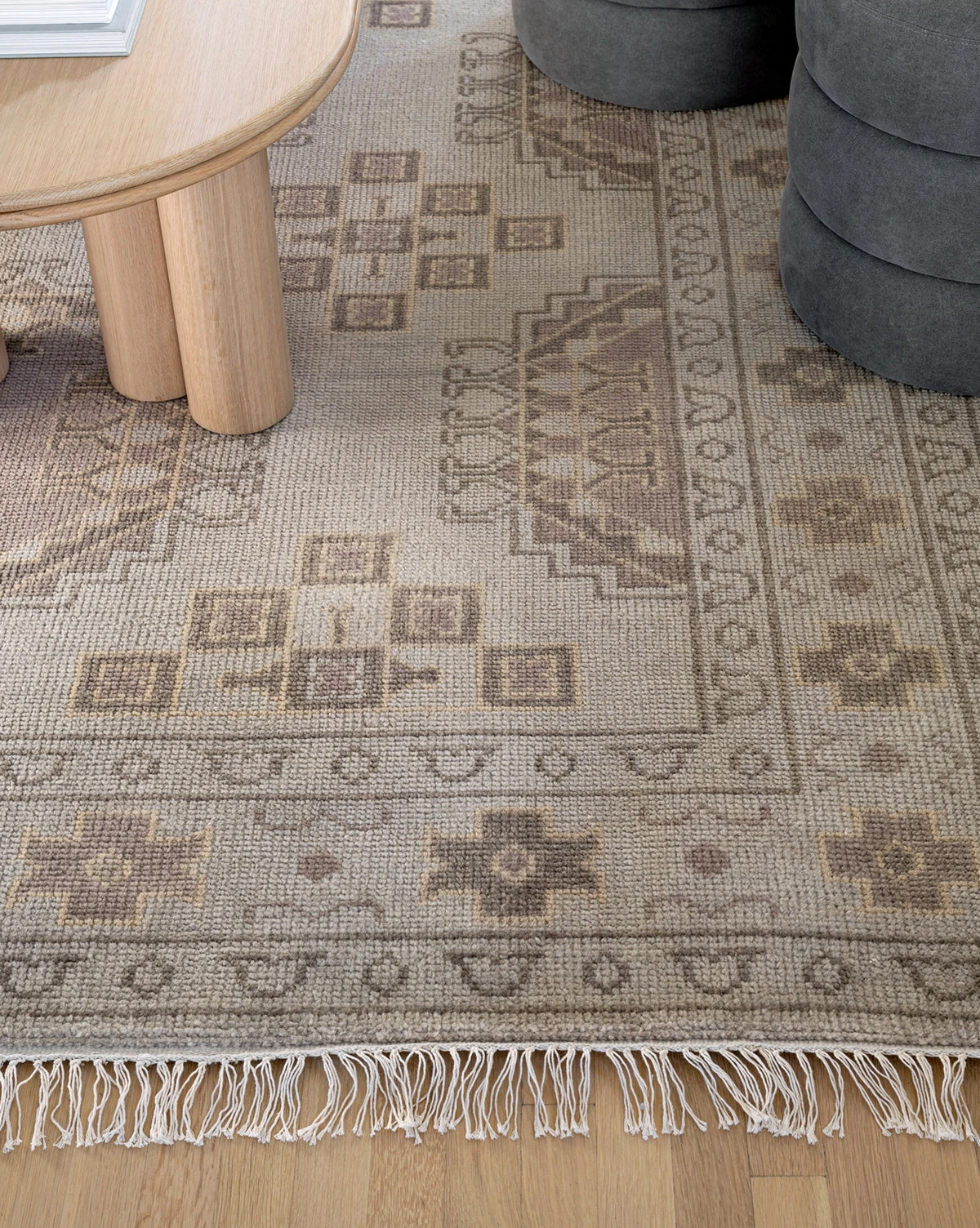 Hand-knotted from wool, the Kenna Hand-Knotted Wool Rug blends beauty and durability in a design that grounds your space. Its tonal palette is warm and inviting, while its fringe is playful and casual.