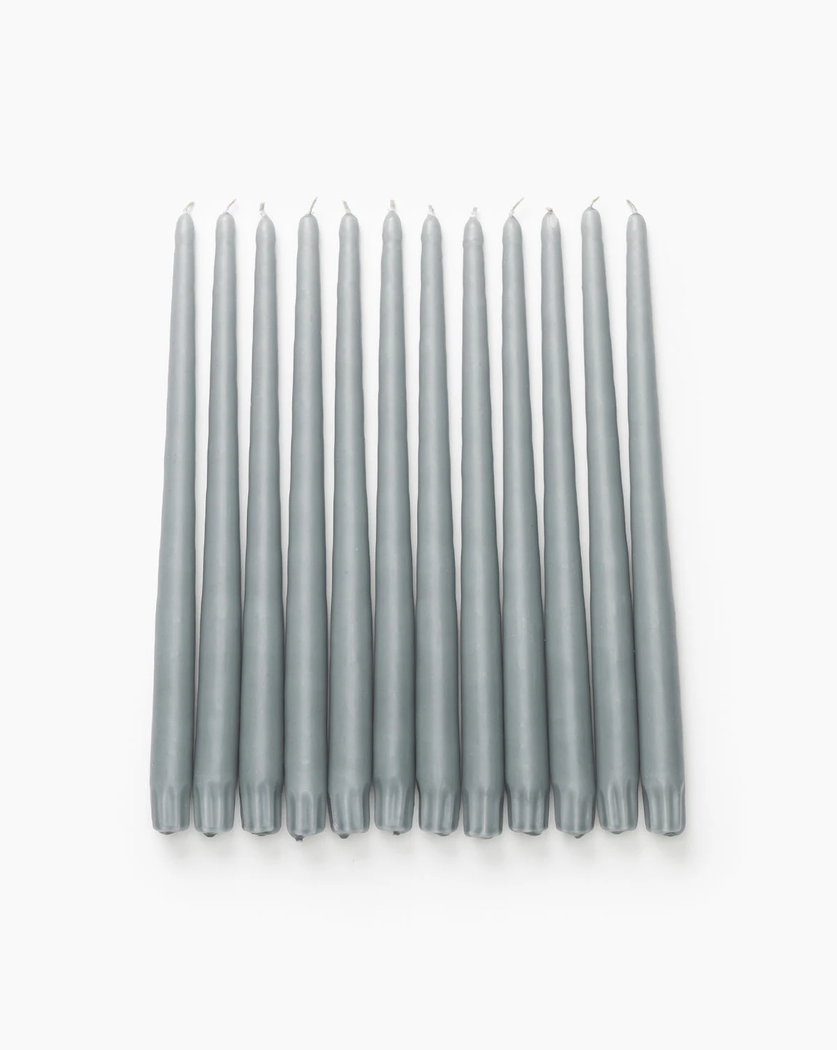 With a neutral gray hue, these taper candles easily elevate your modern styling. When used together in an orderly or staggered arrangement, the Light Gray Taper Candles create a warm candlelight unity around a fireplace or dining room.