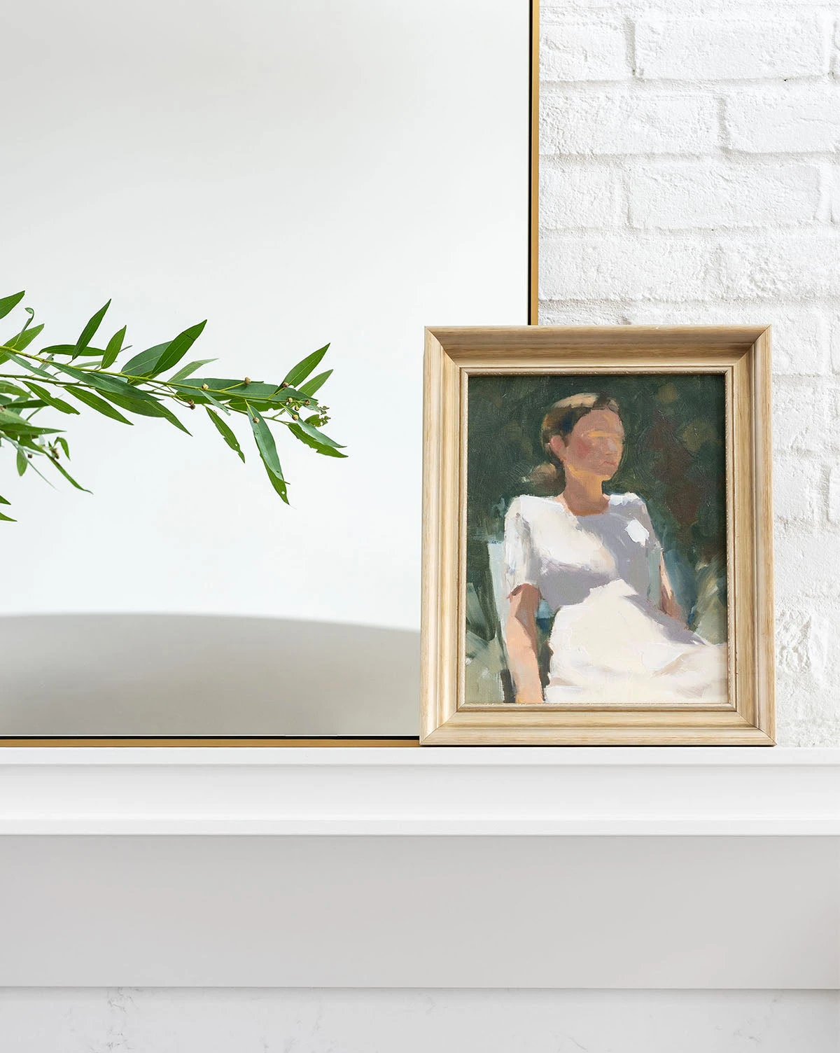 Our vintage-inspired Ponder in the Park 1, portrays an artist-enhanced profile of a painted woman. Contrasting light pink and deep green hues give this piece an abstract quality, as its texture adds intriguing movement.
