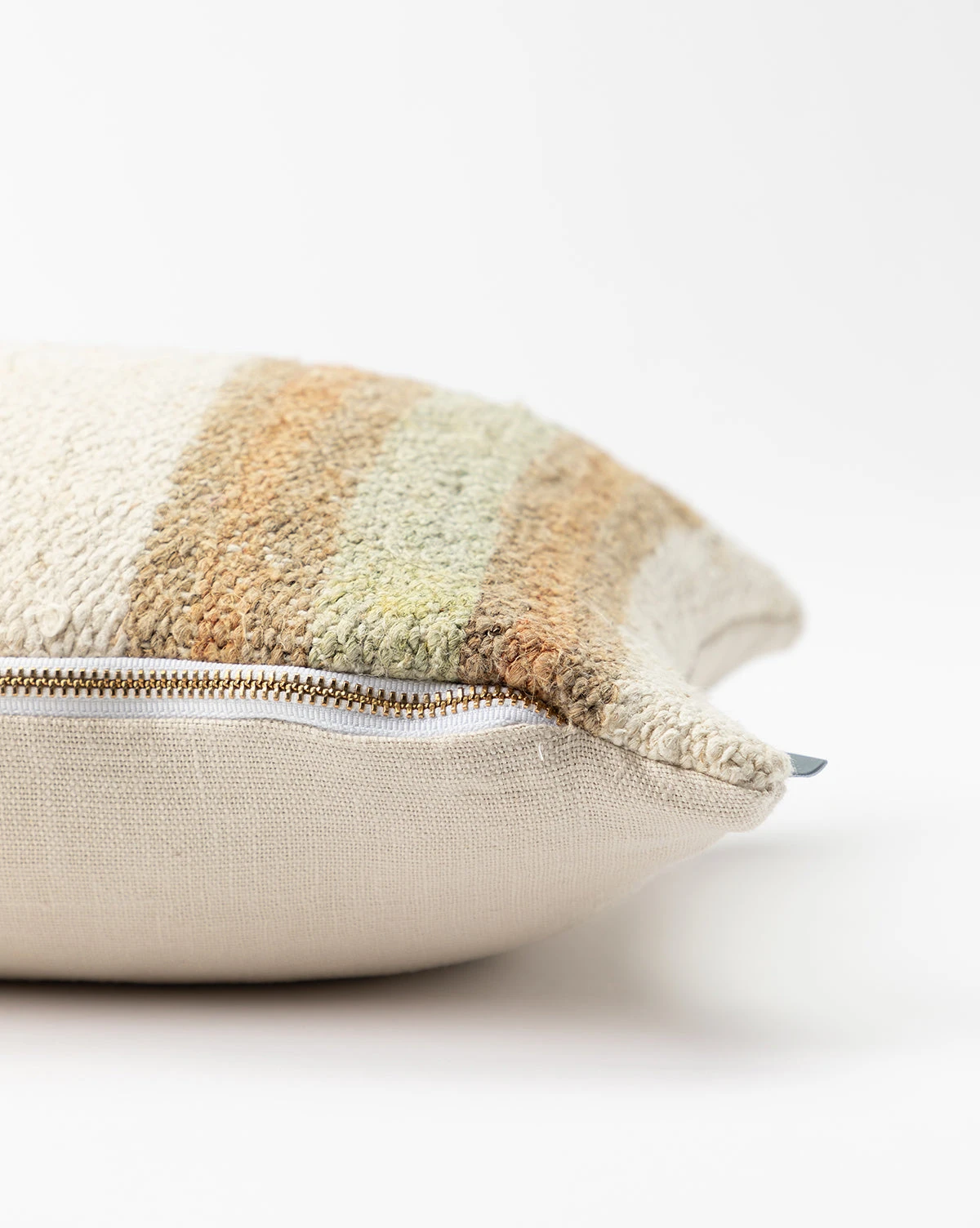 In a warm palette of muted cream, brown, and green, the Vintage Thick Striped Pillow Cover No. 2 is crafted from wool with a linen backing and features broad stripes. As part of our Vintage Collection, this pillow cover was hand-selected by our team for the character, heirloom quality, and beauty it will add to the home.Â